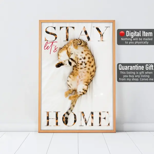 Lets Stay Home Print Stay Home Poster Cat Poster Print Leopard Cat Cat Lover Print Cat Lover Gift Cat Wall Art Cat Printable
