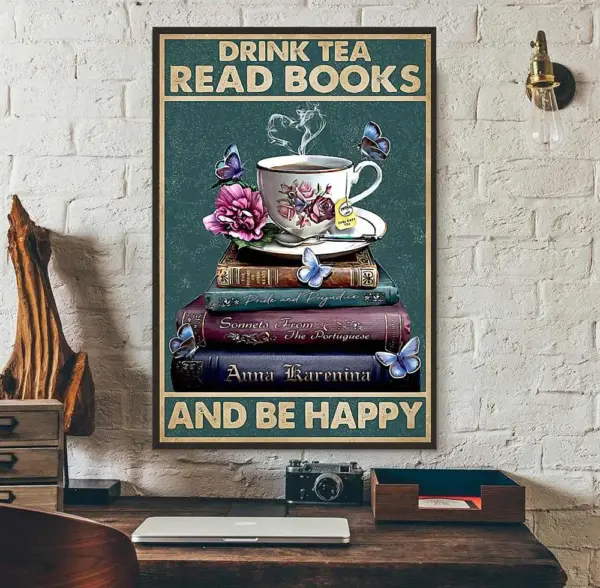 Librarian Drink Tea Read Books Be Happy Vertical Poster