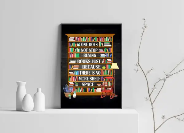 Librarian Poster Books Lovers Gift Vintage Poster One Does Not Stop Buying Books Just Because There Is No More Shelf Space Wall Art