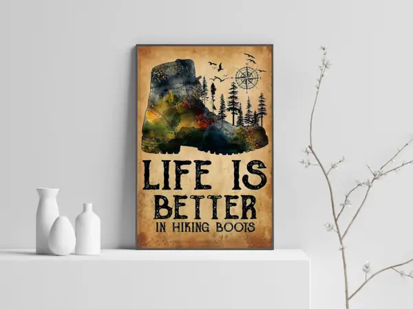 Life Is Better In Hiking Boots Poster Hiking Poster Camping Art Print Adventure Poster Mountain Hiking Poster Signs For Home