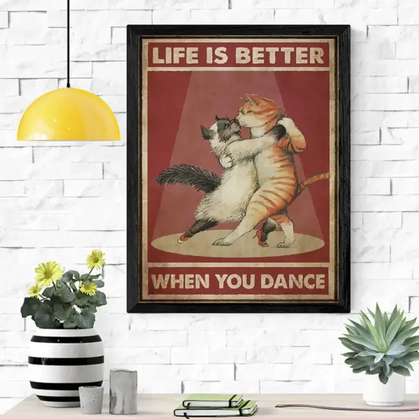 Life Is Better When You Dance Vertical Poster Black Cat Poster Cat Vintage Poster Cat Lover Gift