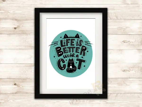 Life Is Better With A Cat Gloss Print Hard Card Poster Gift No Frame
