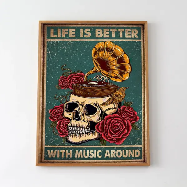 Life Is Better With Music Poster Dancing Wall Art Music Lover Gift Vintage Music Canvas Wall Art Gift For Music Lover Vinyl Wall Art