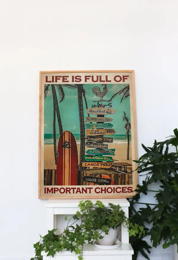 Life Is Full Of Important Choices Poster Beach Wall Art Surfing Girl Poster Surfing Poster Surfing Wall Art Love Surfing