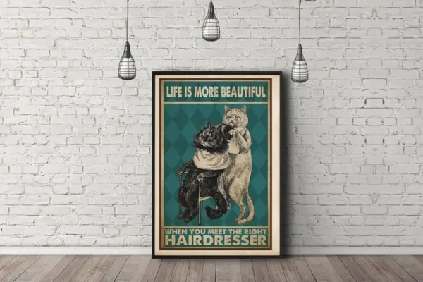 Life Is More Beautiful When You Meet The Right Hairdresser Funny Gift For Cat Lover Essential Poster Hairdresser Gift Hair Salon Decor