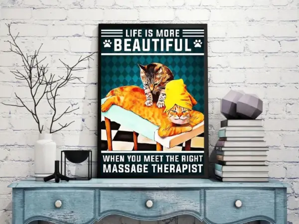 Life Is More Beautiful When You Meet The Right Massage Therapist Cat Poster Print Wall Art Cat Lover Gift Wall Decoration Cat Portrait