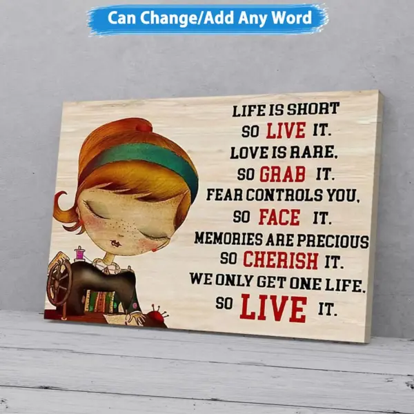 Life Is Short So Live It Sewing Horizontal Canvas Wall Art Hang Print Poster Painting Home Decor House Decoration Hanging Housewarming Gift