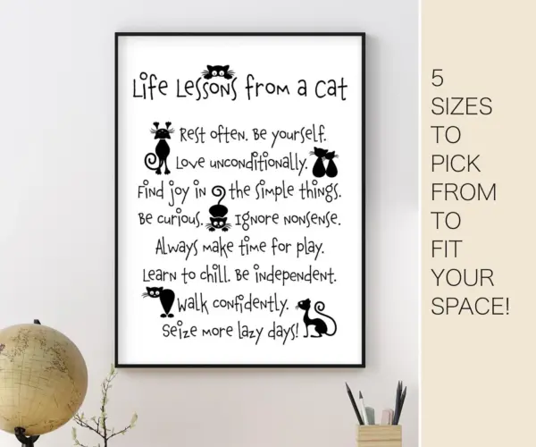 Life Lessons From A Cat Cat Lovers Kids Room Art Whimsical Art Cat Wall Art Cat Illustrations