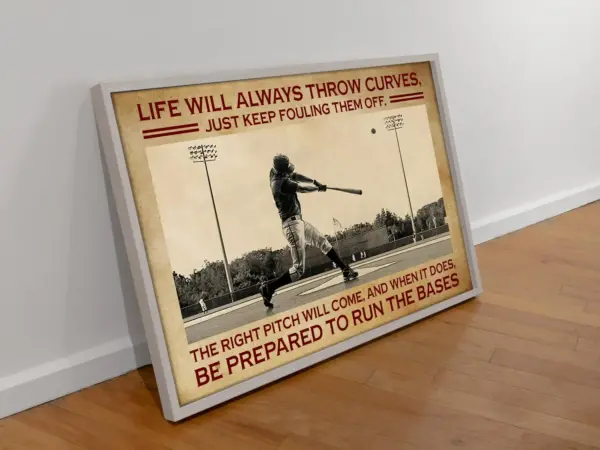 Life Will Always Throw Curves The Right Pitch Will Come Be Prepared To Run The Bases Baseball Motivational Poster Canvas Art Print