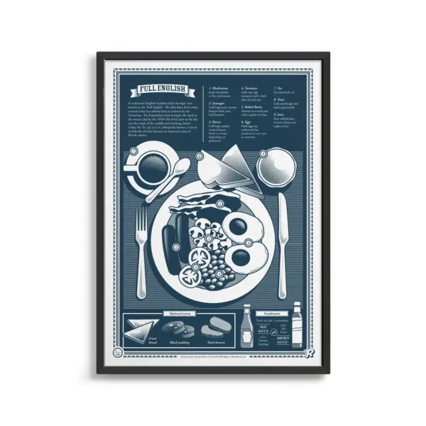 Limited Edition Full English Breakfast Infographic Print Pantone Art Monotone Poster