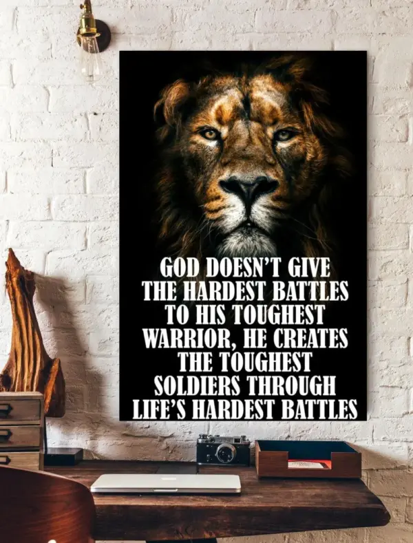 Lion God Does Not Give The Hardest Battles Vertical Print Poster