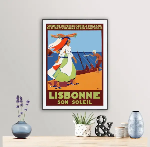 Lisbonne Portugal Vintage Travel Poster Poster Paper Sticker Or Canvas Print Gift Idea