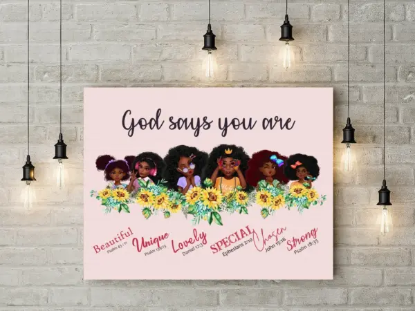 Little Black Girls Canvas Poster God Says You Are African American Girls Print Lovely Special Birthday Gift For Daughter Kids Room Decor