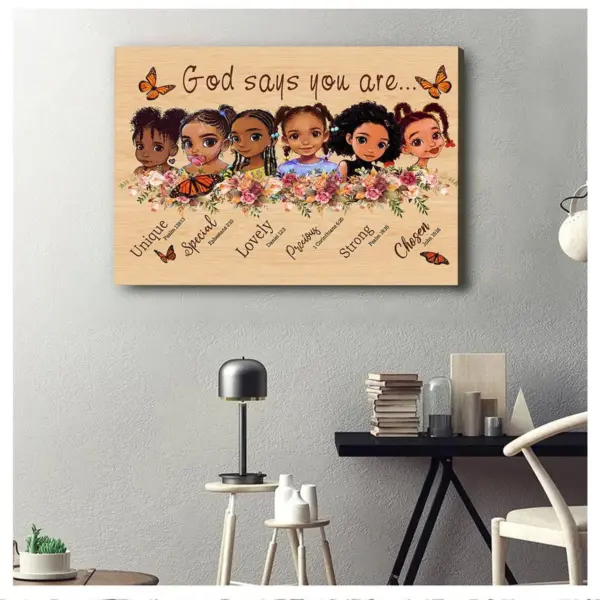 Little Black Girls God Says You Are Unique Special Poster Canvas Precious Strong Black Girl Pride Gift For Daughter Kids Room Wall Decor