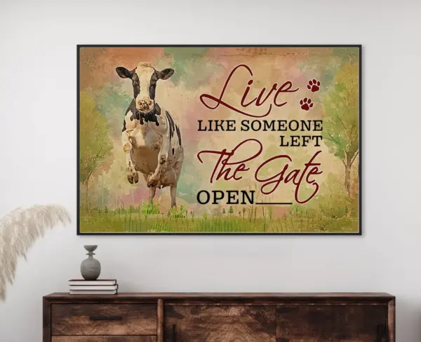 Live Like Someone Left The Gate Open Cow Poster Cows Wall Art Decor Darmhouse Canvas Decor Cows Wall Art Cows Farm Animals
