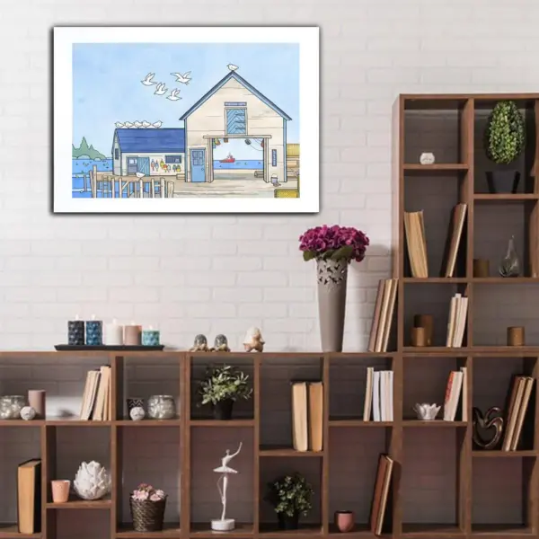 Lobster Fishing Dock Poster Marine Fishing Town Poster Beach House Poster Nautical Art Print Wall Art Home Decor Room Decor Art Print