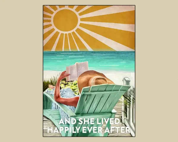 Look Sun Read Book Women Relax And She Lived Happily Ever After Fan Lover Poster Art Print Wall House Office Decor For Home Living Room