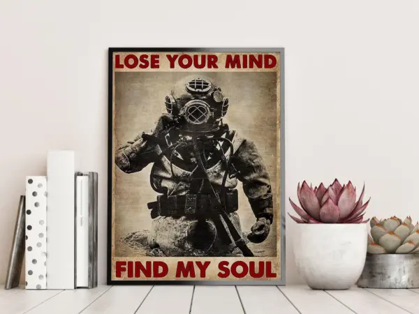 Lose Your Mind Find My Soul Poster Scuba Diving Poster Dive Lover Gift Sports Poster Vertical Poster Wall Hanging Home Decor