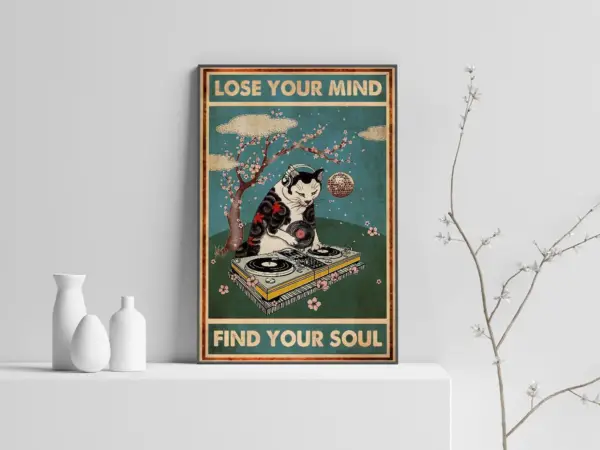 Lose Your Mind Find Your Soul Poster Black Cat Print Music Poster Kitty Biscuits Poster Smoke Cat Poster Wall Decor Signs For Home