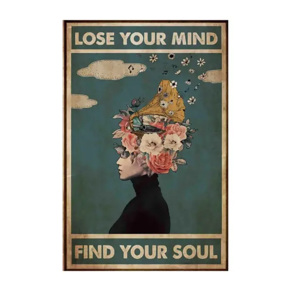 Lose Your Mind Find Your Soul Poster Girl Floral Wall Print Music Wall Decoration Music Poster Retro Girl Music Art Print Wall Art
