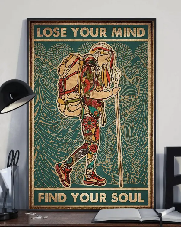 Lose Your Mind Find Your Soul Poster Hiking Poster Adventure Poster Hippie Girl Poster Retro Vitage Poster Framed Matte Canvas