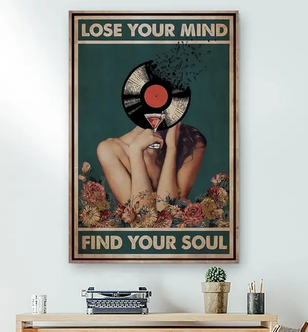 Lose Your Mind Find Your Soul Poster Music Poster Vinyl Art Girl Drink Wine Print Music For Life Music Art Print Gift For Music Lover