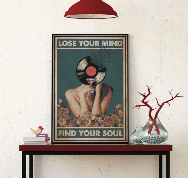 Lose Your Mind Find Your Soul Poster Music Poster Vinyl Poster Girl Drink Wine Print Music For Life Music Art Print Music Lover Gift