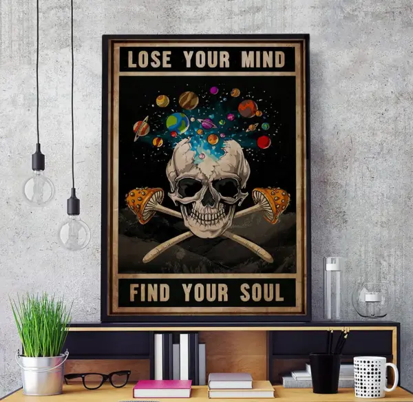 Lose Your Mind Find Your Soul Skull Fungi Skull Astronaut Poster Astronaut Space Art Astronaut Gift Mushroom Art Print Vintage Poster