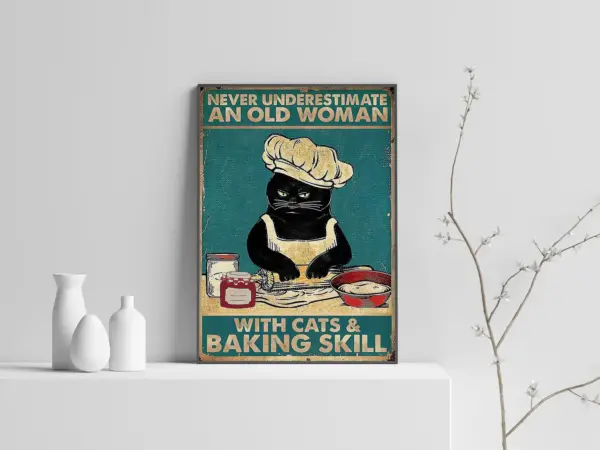 Love Baking Poster Never Underestimate An Old Woman With Cats And Baking Skill Vintage Poster Funny Cat Baking Poster Cat Lover Gift