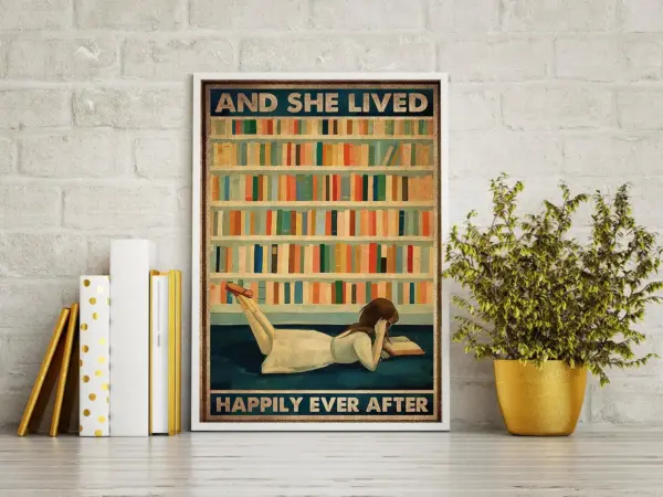 Love Book Poster And She Lived Happily Ever After Vintage Poster Vintage Book Poster Reading Book Poster Book Lover Gift