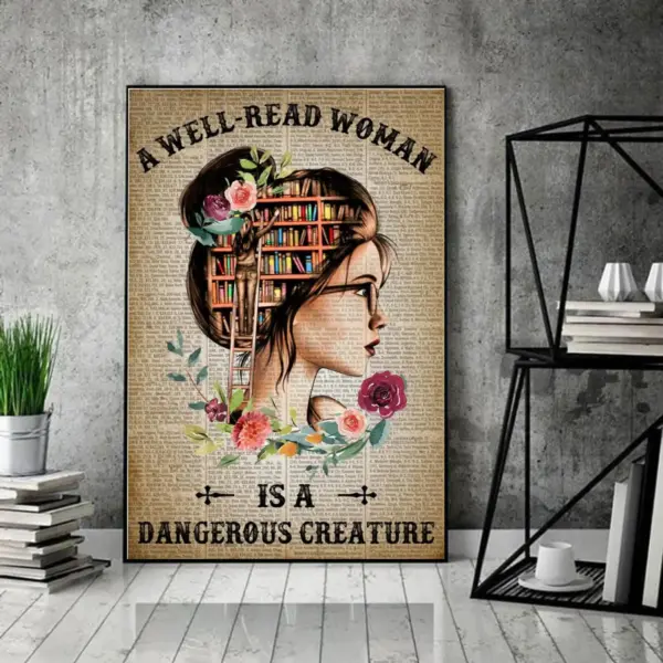 Love Book Poster Canvas Book Vintage A Well Read Woman Is A Dangerous Creature Poster Vintage Girl Book Poster Book Lovers Gift