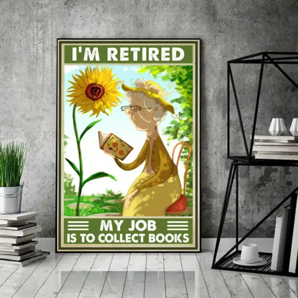 Love Book Poster Canvas Book Vintage Poster I M Retired My Job Is To Collect Books Vintage Grandma Book Poster Book Lovers Gift