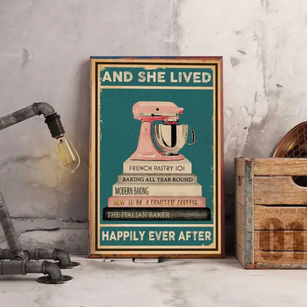 Love Book Poster Love Baking Poster And She Lived Happily Ever After Vintage Poster Book Vintage Poster Baking Vintage Poster