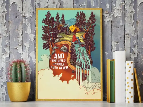 Love Camping Poster And She Lived Happily Ever After Vintage Poster Vintage Girl Camping Poster