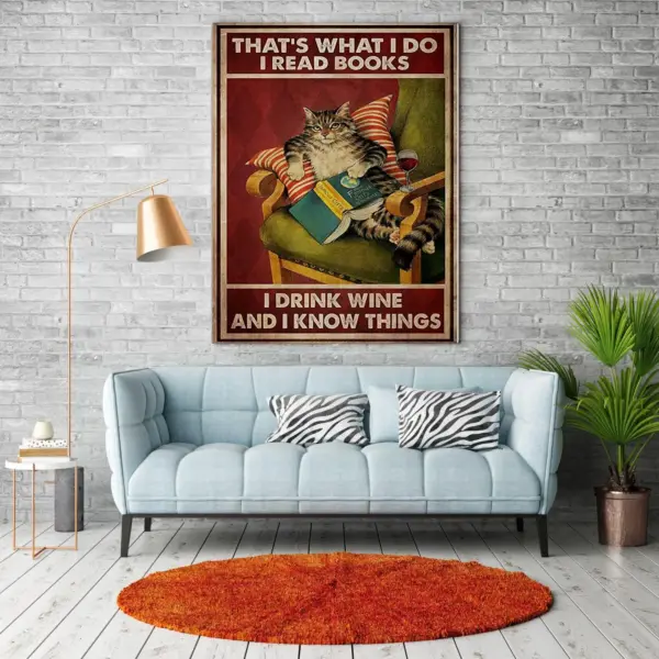Love Cat Poster Black Cat Reading Book Cat Drink Wwine And Know Things Poster Funny Cat Canvas Cat Wall Art Decor Reading Poster M