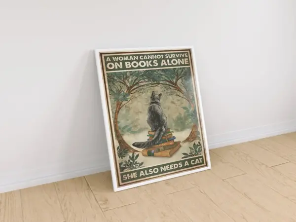 Love Cat Poster Cat Vintage Poster Love Book Poster Book Vintage Poster A Woman Cannot Survive On Books Alone She Also Needs A Cat