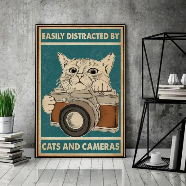 Love Cat Poster Easily Distracted By Cat And Camera Poster Vintage Cat Canvas Print Funny Cat Poster Cat Poster Cat Lover Gift