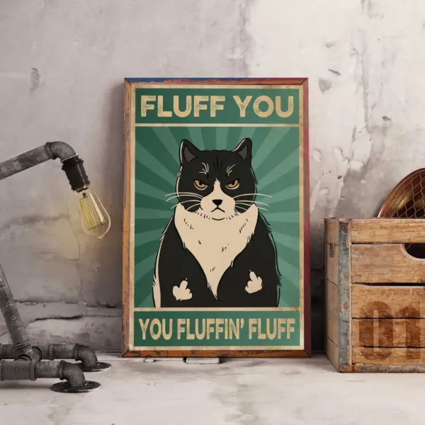 Love Cat Poster Fluff You You Fluffin Fluff Poster Vintage Cat Canvas Print Funny Cat Poster Funny Kitten Poster Cat Lover Gift