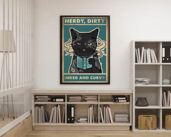 Love Cat Poster Love Book Vintage Poster Cat Book Vintage Poster Nerdy Dirty Inked And Curvy Vintage Poster Funny Cat Lovers Gift D