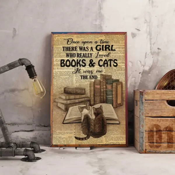 Love Cat Poster Love Reading Book Poster Once Upon A Time There Was A Girl Who Loved Books And Cats Poster Vintage Cat Book Poster
