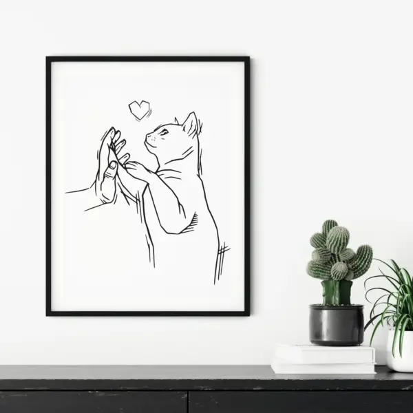 Love Cat Poster Paw And Hand Cute Cat Poster Cat Wall Art