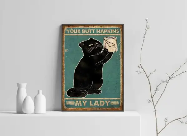 Love Cats Poster Your Butt Napkins Poster Cat Bathroom Poster Black Cat Toilet Napkin Wall Art Cat Lover Gift Funny Cat Bathroom