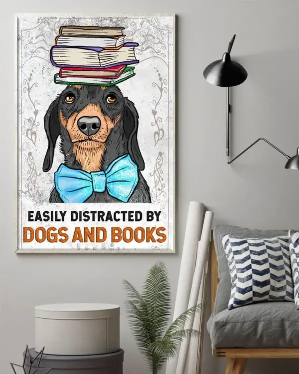 Love Dog Poster Dachshund Dog Poster Easily Distracted By Dogs And Books Vintage Poster Dog Lover Poster Love Reading Book Poster Framed Matte Canvas