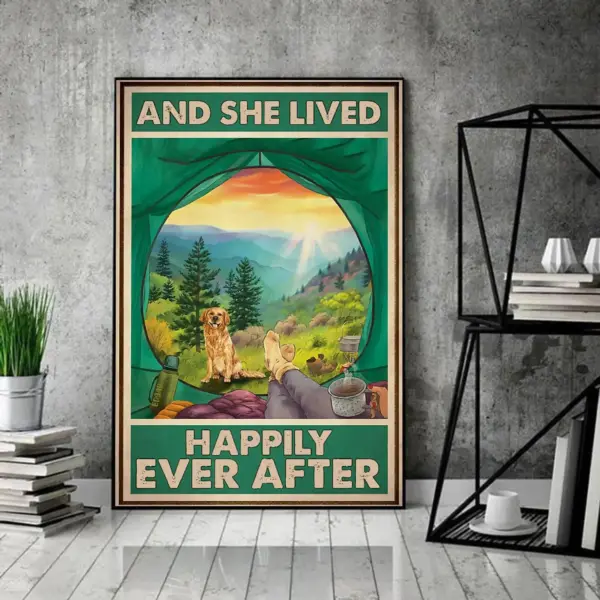 Love Dog Poster Love Camping Poster And She Lived Happily Ever After Vintage Poster Vintage Girl Dog Camping Poster Dog Lovers Gift
