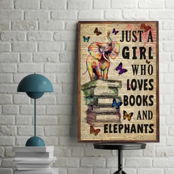 Love Elephant Poster Love Reading Book Poster Just A Girl Who Loves Books And Elephant Poster Vintage Book Poster Elephant Gift