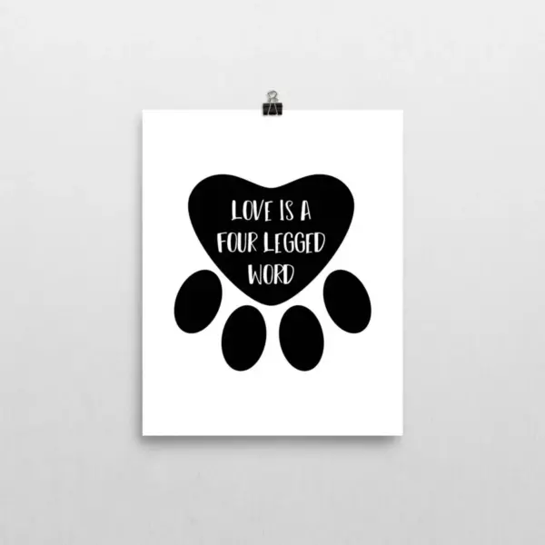 Love Is A Four Legged Word Wall Art Print Veterinarian Gift Physical Print Animal Lover Pet Shelter Decor Pet Adoption Dog Walker