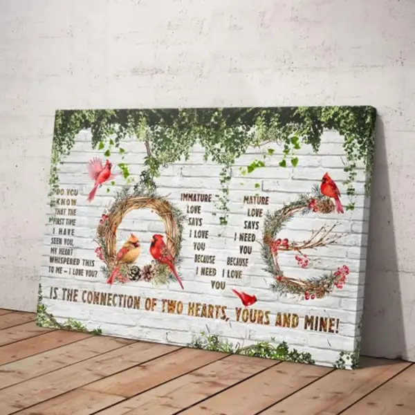 Love Is The Connection Of Two Hearts Yours And Mine Canvas Cardinals Wall Art Hang Print Poster Family Home Decor Housewarming Gift
