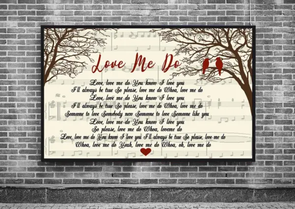 Love Me Do Lyrics Poster Valentine Gift For Wife Husband Music Poster Music Decor Song Lyrics Print Birds Lyric Poster Home Decor