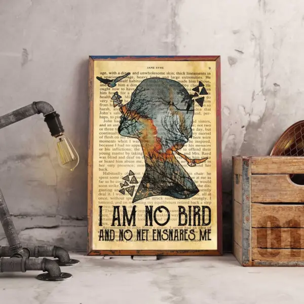 Love Reading Book Poster Jane Eyre Charlotte Bronte Novel Poster Jane Eyre Canvas I Am No Bird And No Net Ensnares Me Vintage Poster