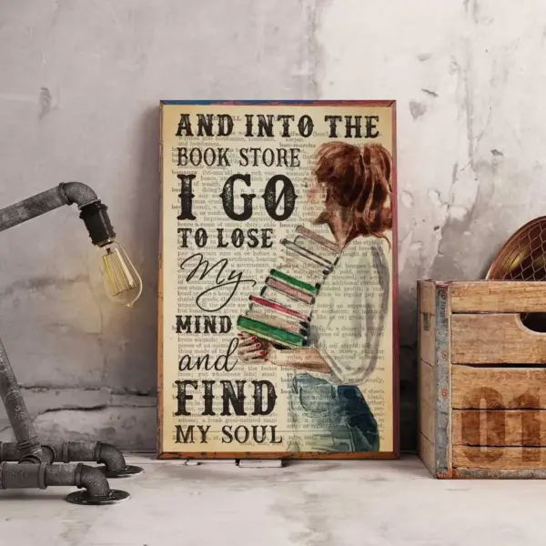 Love Reading Book Poster Vintage Book Poster Into The Bookstore I Go To Lose My Mind And Find My Soul Vintage Poster Book Lover Gift